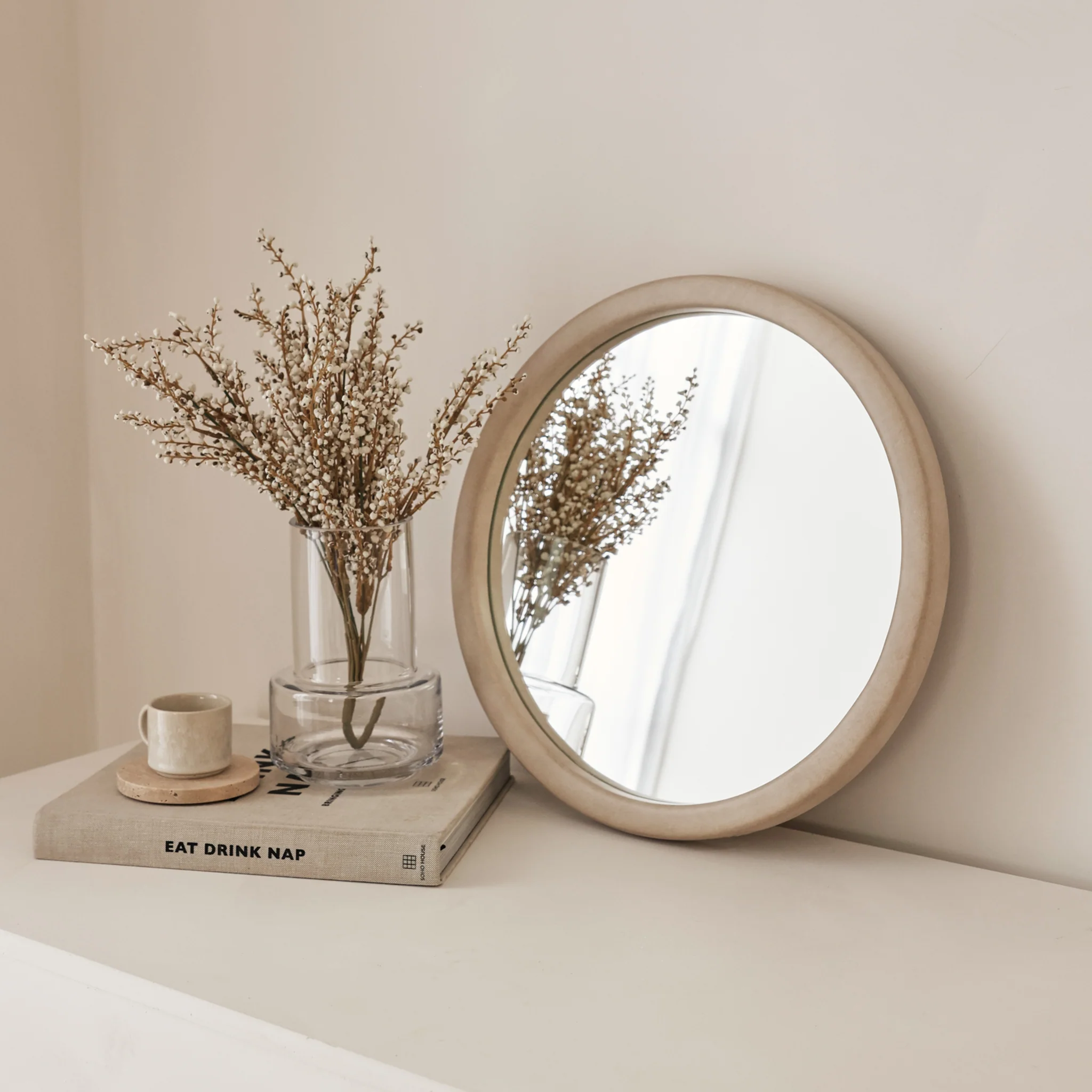Arden - Concrete Round Wooden Wall Mirror 40cm x 40cm